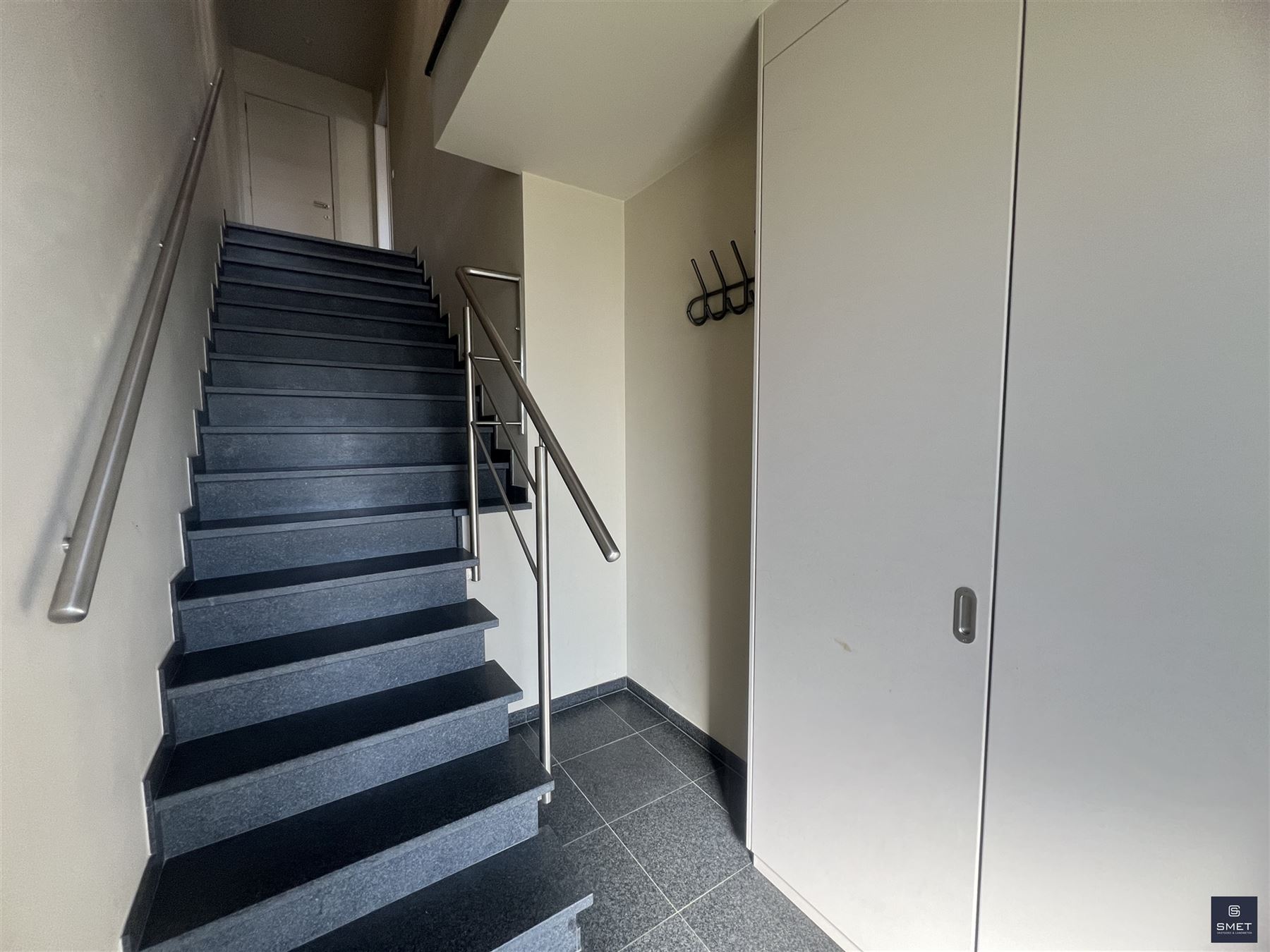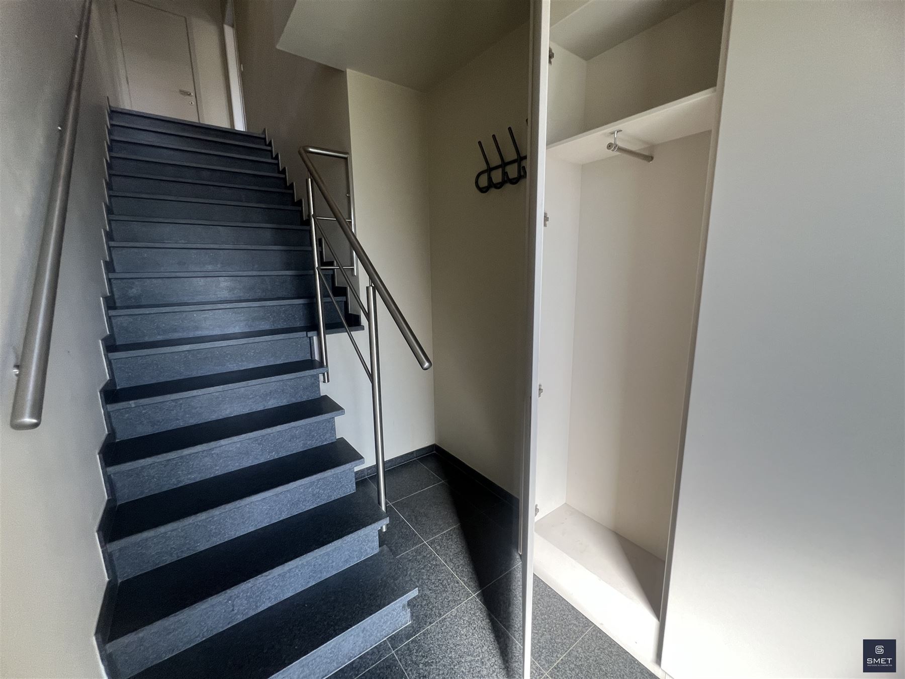 Recent luxe DUPLEX appartement nabij het dorpscentrum van Beveren, omvattende o.a. GV : private parking voor de deur, private inkomhal met bergkast en granieten trap naar verdiep. VD 1 : traphal, afz. toilet, living met open ingerichte keuken, keukenberging, zuid-west terras en traphal naar 2de v. VD 2 : nachtgang, slaapkamer 1, slaapkamer 2, berging of kleine kinderkamer, badkamer met ligbad/douche, lavabo en toilet. NOKZOLDER : bergzolder. ALU ramen met dubbele beglazing - gemeenschappelijke fietsenberging - individuele CV op aardgas - EPC: ± 145 kWh/m² - vaste kost : € 5/maand. Meer info www.BIK-ONLINE.be EN www.IMMOSCOOP.be of BEL 03 775 41 88