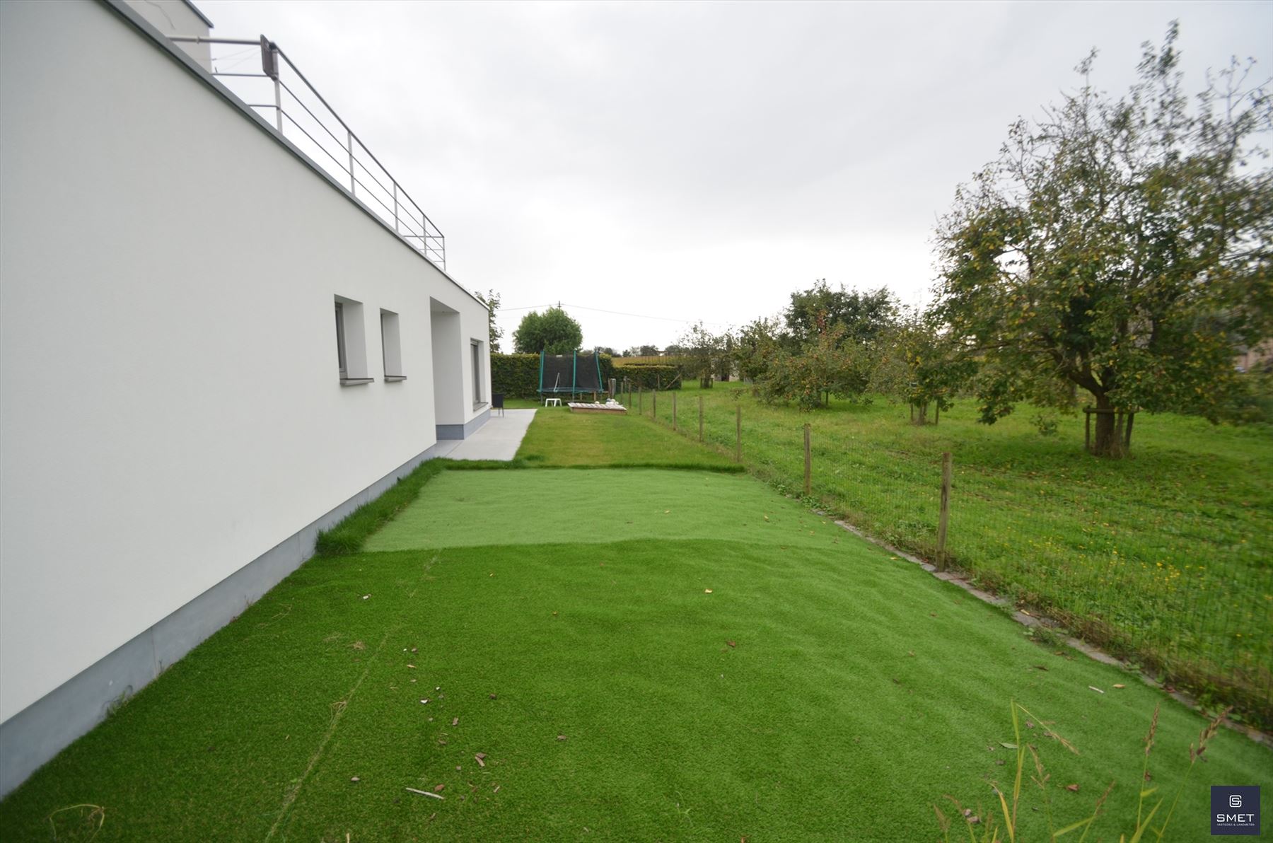 Instapklare moderne open bebouwing ingericht als Kangoeroewoning/Zorgwoning op ± 637 m² grond : Deze ruime gezinswoning/kangoeroewoning/zorgwoning bevindt zich op een absolute toplocatie met zeer vlotte verbindingsmogelijkheden, vlakbij park Hof ter Saksen, scholen, winkels en openbaar vervoer. De woning werd recent volledig gerenoveerd en voorzien van de nieuwste (oa warmtepomp en zonnepanelen) technieken. Het buitenschrijnwerk bestaat uit kwalitatief PVC ramen met dubbele beglazing. De totale benutbare oppervlakte bedraagt netto maar liefst ± 270m². Tevens is deze woning gelegen op het einde van een doodlopende rustige woonstraat met landelijk uitzicht over de velden. oa : 5 slpks, 3 badks, carport, tuinhuis, tuinberging, unieke kans !