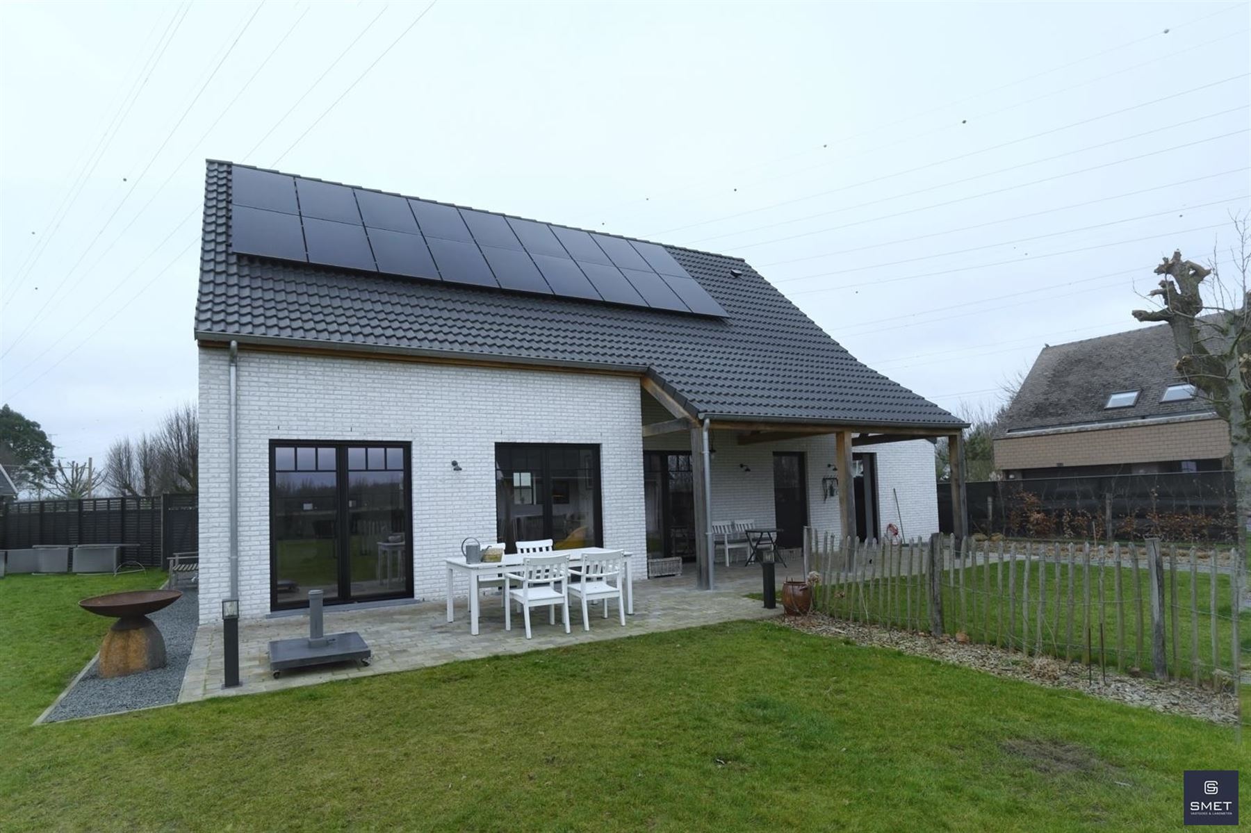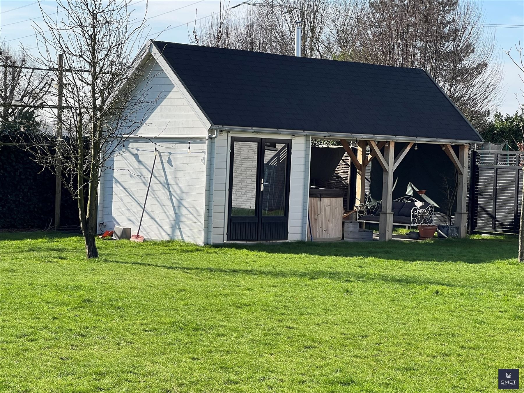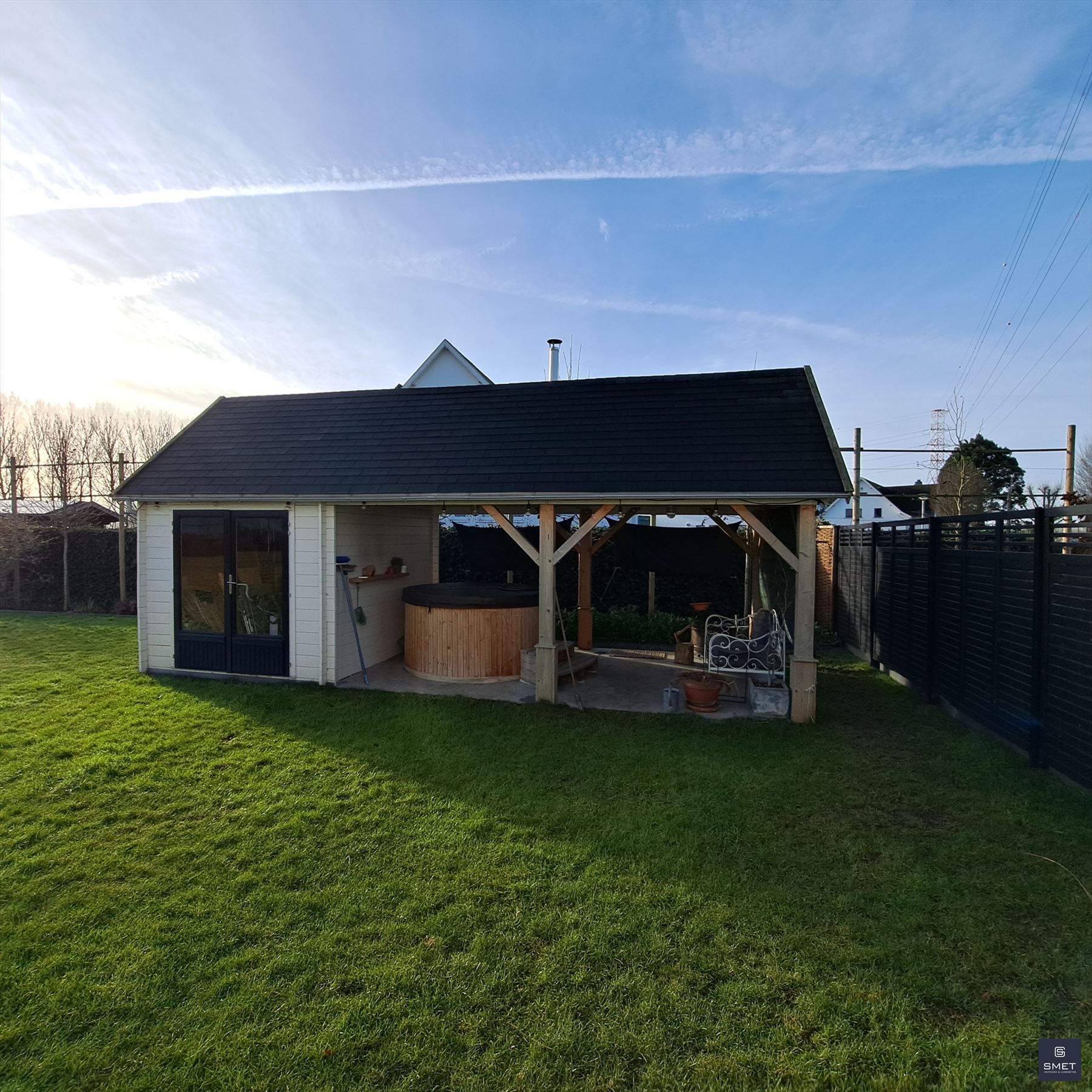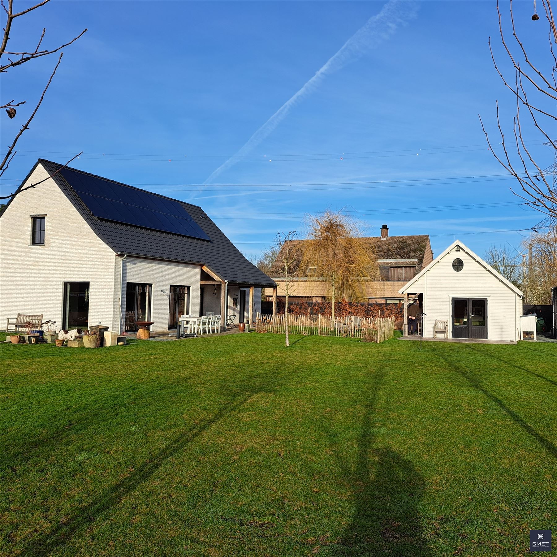 LANDELIJKE VILLA OP RUSTIGE LOCATIE Bent u op zoek naar een recente exclusieve woning op een rustige locatie ? Zoek niet verder en geniet mee van deze fantastische landelijk ingerichte villa met grote tuin. Het bouwjaar is 2021 en de woning verkeerd in uitstekende staat . De totale opp. bedraagt ± 1.686 m². In de omheinde tuin vind je o.a. een garage, een groot, vergund bijgebouw (ideaal voor de bijberoeper of als hobbyruimte/atelier) en lounge pergola met hottub. De woning biedt een zee van ruimte met een woongedeelte (open vide tot in de nok) van bijna 80 m² met een open ingerichte keuken en aansluitend een groot overdekt terras. Tevens zijn er extra bergingen en ingemaakte kasten voorzien. Op het verdiep bevinden zich 2 slk en een open tv-lounge/buro of mogelijks 3e slk en de badkamer. Het EPC bedraagt 46 kWh/m²jaar (=label A) / E-peil 23 (=BEN) en de elektriciteit is conform. Bovendien beschikt de woning over 18 zonnepanelen en is er een regenwaterput van 15.000 l voorzien. Kortom , een pareltje in een oase van groen en ideaal voor natuurliefhebbers ! Voor meer informatie of een plaatsbezoek, gelieve ons te contacteren op het nummer 03 775 41 88 of via Christel@vastgoed-Smet.be “alle gegevens worden vrijblijvend verstrekt, enkel ter inlichting, zonder contractuele verbintenis of garantie van onzentwege en kunnen op ieder ogenblik gewijzigd worden”