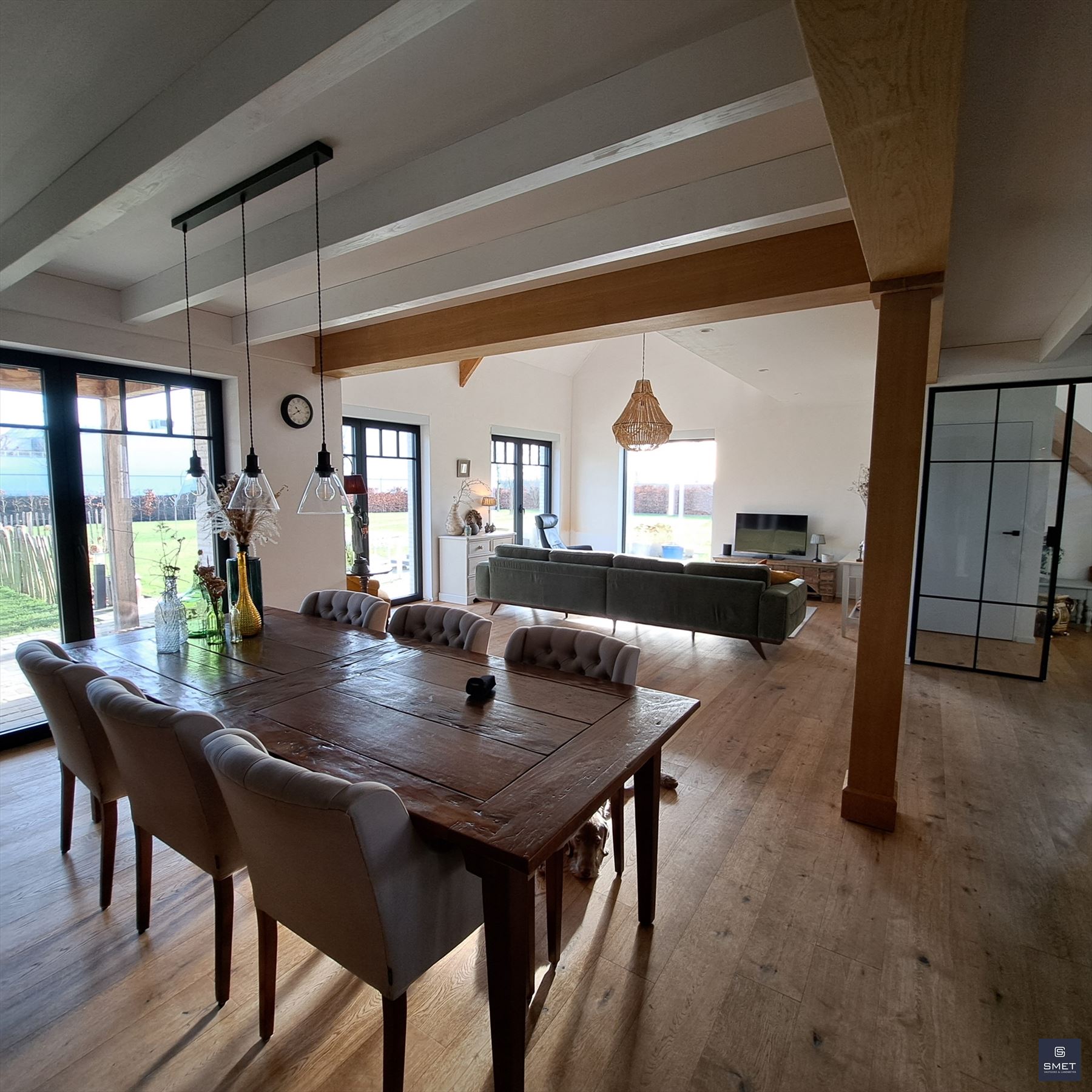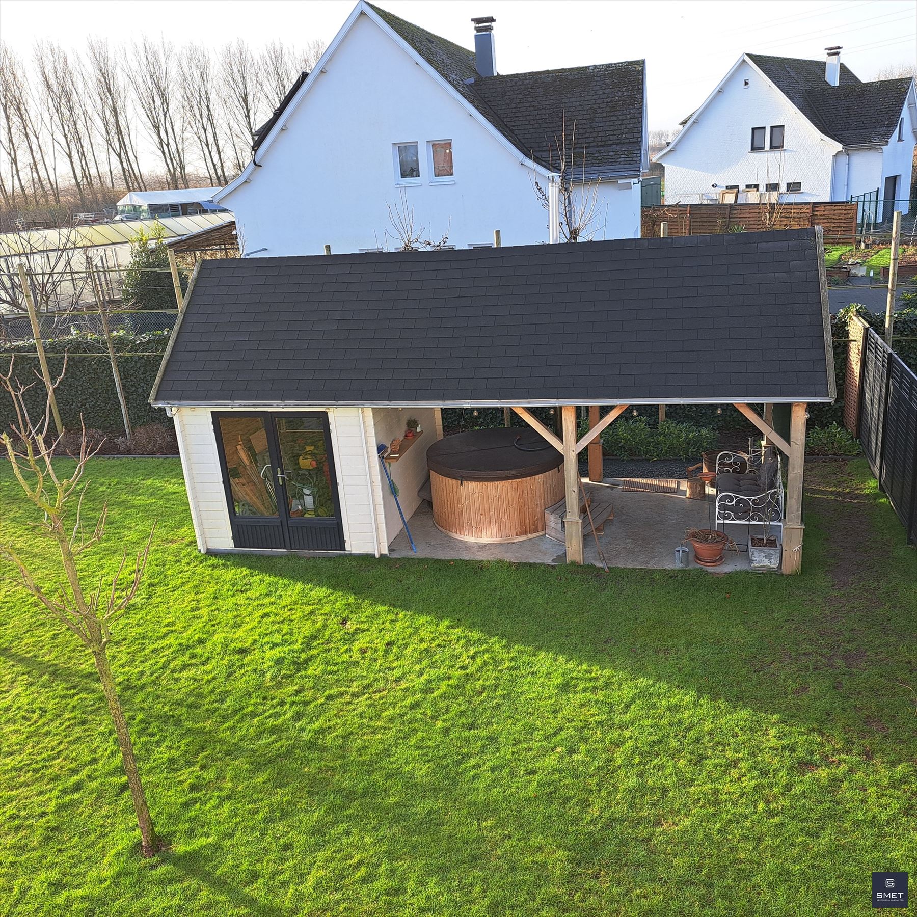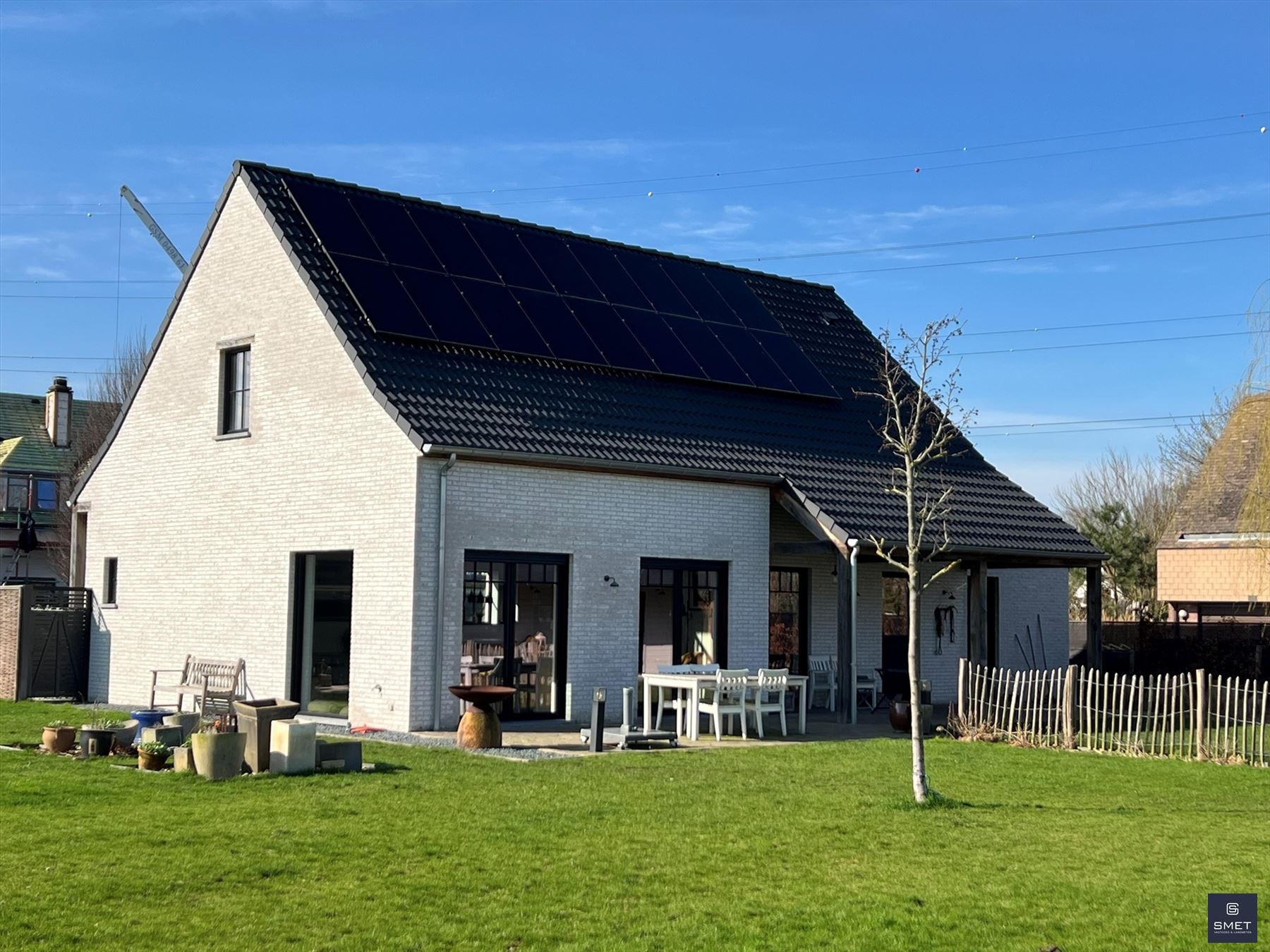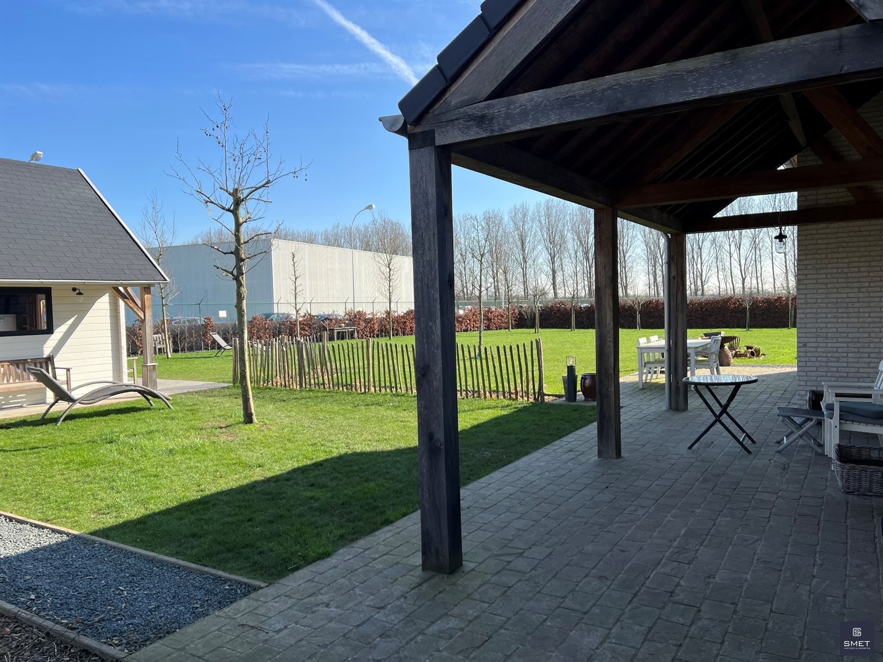 LANDELIJKE VILLA OP RUSTIGE LOCATIE Bent u op zoek naar een recente exclusieve woning op een rustige locatie ? Zoek niet verder en geniet mee van deze fantastische landelijk ingerichte villa met grote tuin. Het bouwjaar is 2021 en de woning verkeerd in uitstekende staat . De totale opp. bedraagt ± 1.686 m². In de omheinde tuin vind je o.a. een garage, een groot, vergund bijgebouw (ideaal voor de bijberoeper of als hobbyruimte/atelier) en lounge pergola met hottub. De woning biedt een zee van ruimte met een woongedeelte (open vide tot in de nok) van bijna 80 m² met een open ingerichte keuken en aansluitend een groot overdekt terras. Tevens zijn er extra bergingen en ingemaakte kasten voorzien. Op het verdiep bevinden zich 2 slk en een open tv-lounge/buro of mogelijks 3e slk en de badkamer. Het EPC bedraagt 46 kWh/m²jaar (=label A) / E-peil 23 (=BEN) en de elektriciteit is conform. Bovendien beschikt de woning over 18 zonnepanelen en is er een regenwaterput van 15.000 l voorzien. Kortom , een pareltje in een oase van groen en ideaal voor natuurliefhebbers ! Voor meer informatie of een plaatsbezoek, gelieve ons te contacteren op het nummer 03 775 41 88 of via Christel@vastgoed-Smet.be “alle gegevens worden vrijblijvend verstrekt, enkel ter inlichting, zonder contractuele verbintenis of garantie van onzentwege en kunnen op ieder ogenblik gewijzigd worden”