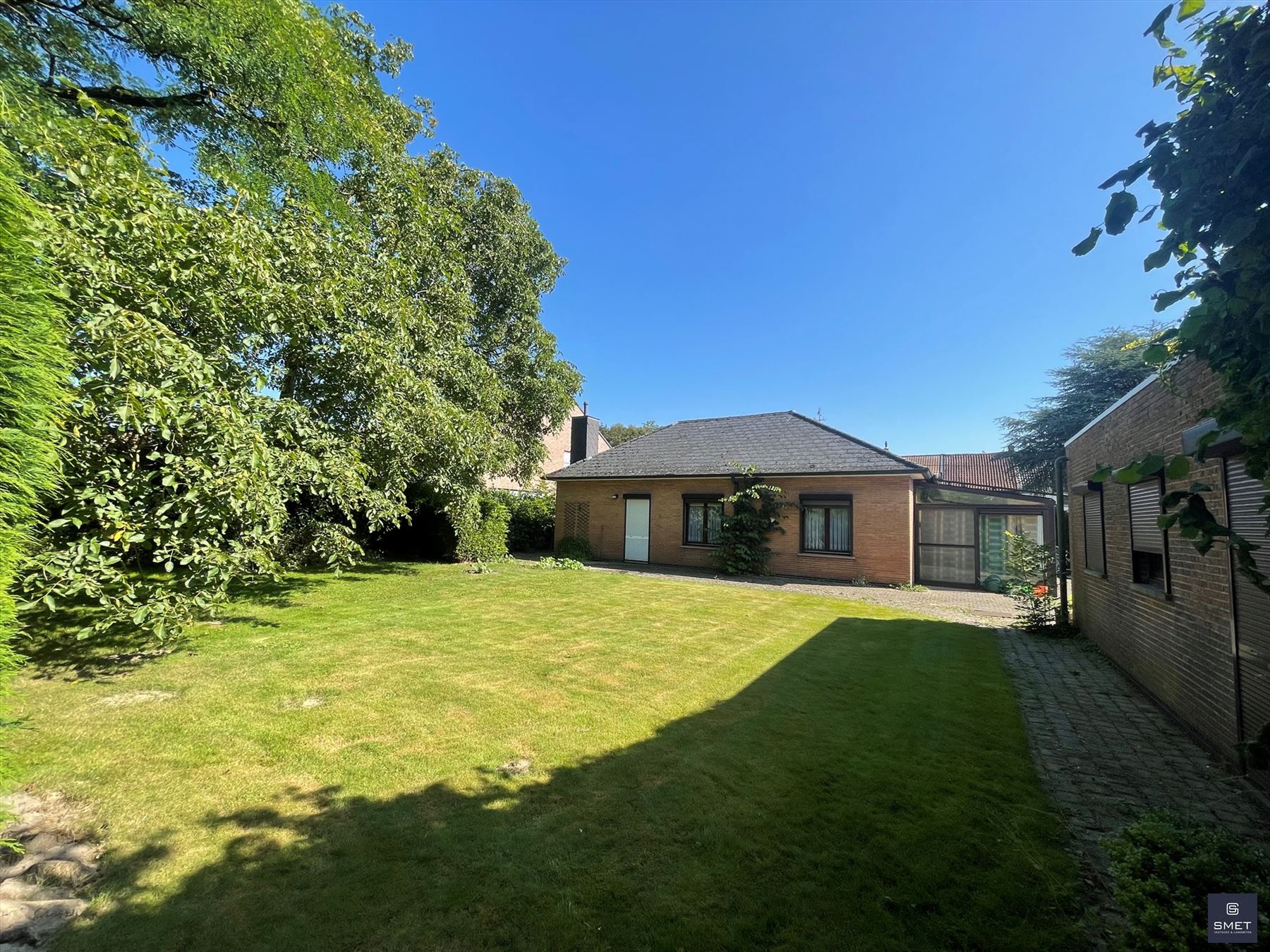 TE REN. BUNGALOW (met aangrenzende BG) Zoekt u een woning waar u in alle rust en omgeven door groen wil genieten, dan is deze te renoveren bungalow op een werkelijk uniek perceel een absolute buitenkans. Het EPC bedraagt 421 kWh/m²/jaar = label E waardoor een renovatieplicht geldt. Achteraan zijn er garages opgetrokken van 8 meter diepte. In de bestaande verkaveling is er een mogelijkheid om de linkse bouwgrond voor een halfopen bebouwing af te splitsen (deze lijn zit in het midden van de 2 garages). Er kan gekocht worden in totaliteit mét bijkomende opname van een prachtige achtergrond van 514 m2 (niet zichtbaar op het verkavelingsplan) aan de prijs van 486.000,- Euro ( totale opp. is dan ± 1.560 m²) De bungalow apart wordt aangeboden aan 330.000,- Euro (achtergrond te negociëren). De bouwgrond voor HOB links wordt op de markt gebracht voor 175.000,- Euro. Bij een bezoek ter plaatse zal u versteld staan van de mooie omgeving. Terreinen in een groen kader zoals deze worden zeldzaam… Voor meer informatie of een plaatsbezoek, gelieve ons te contacteren op het nummer 03/775 41 88 of via Christel@vastgoed-smet.be www.vastgoed-smet.be “alle gegevens worden vrijblijvend verstrekt, enkel ter inlichting, zonder contractuele verbintenis of garantie van onzentwege en kunnen op ieder ogenblik gewijzigd worden”